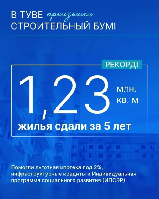 Построено и отремонтировано свыше 1500 объектов — от ФАПов до дорог. Впервые в истории Тувы ввели больше жилья, чем в советский период: 467 тысяч квадратов только в 2025 году.